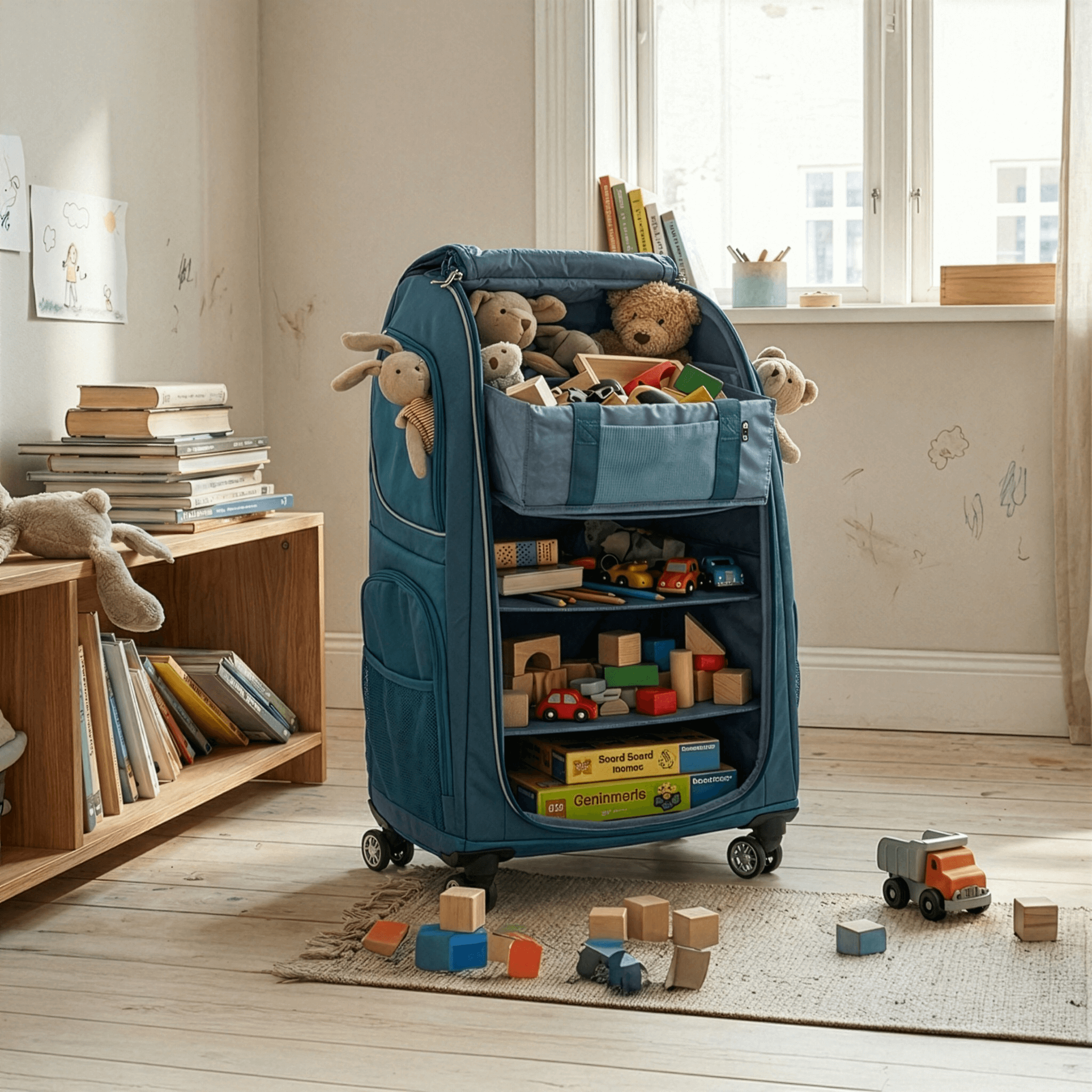 Diesen Verwendungszweck haben unsere WOW-Kunden entdeckt. Damit bleibt der Trolley das ganze Jahr im Einsatz als rollender Krims-Krams-Stauraum im Kinderzimmer.