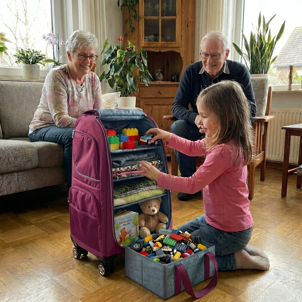 Mit dem Schranktrolley sind unsere WOW-Kids perfekt ausgerüstet. Alles ist vorsortiert und geordnet ... zumindest auf der Hinreise.