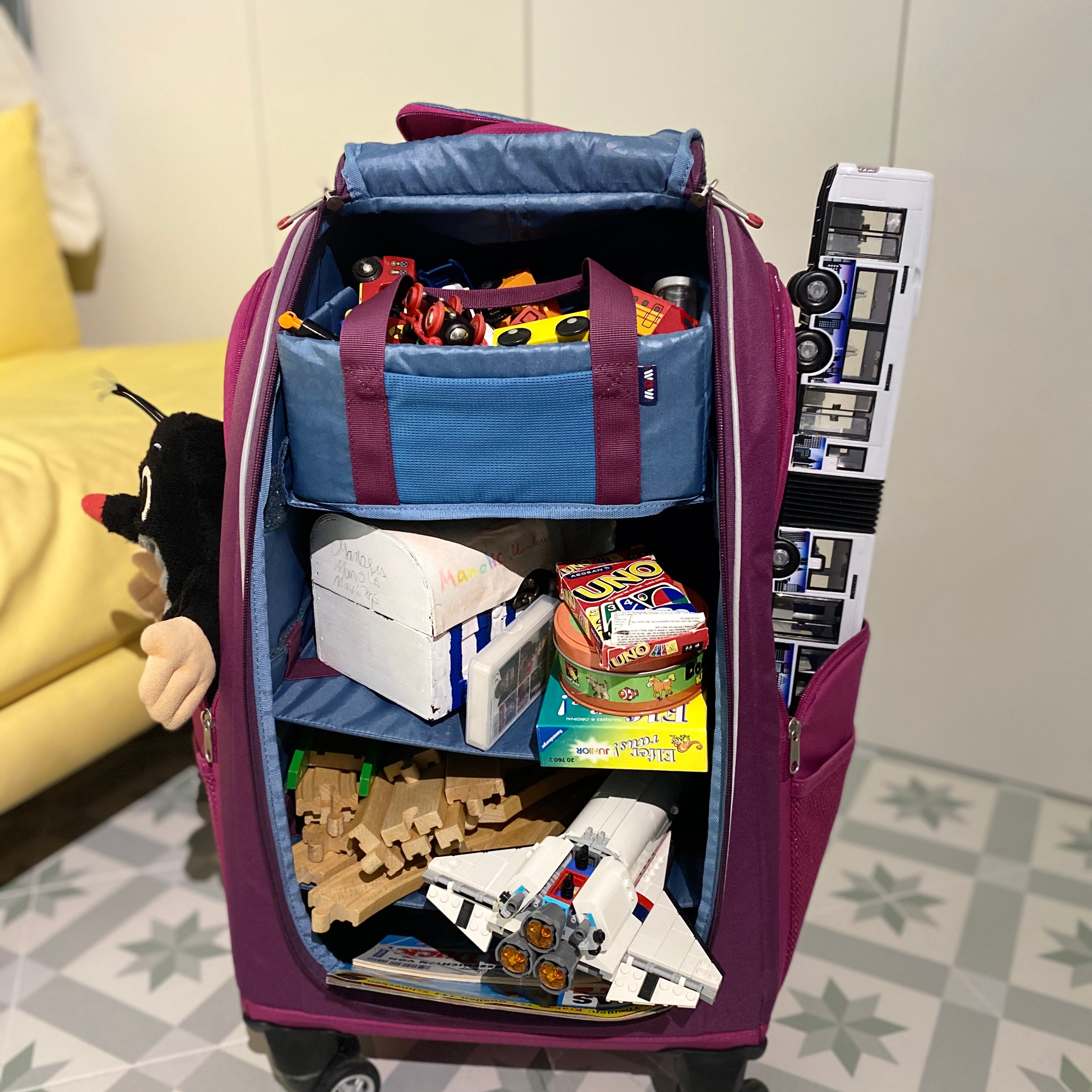 Mit dem Schranktrolley sind unsere WOW-Kids perfekt ausgerüstet. Alles ist vorsortiert und geordnet ... zumindest auf der Hinreise.