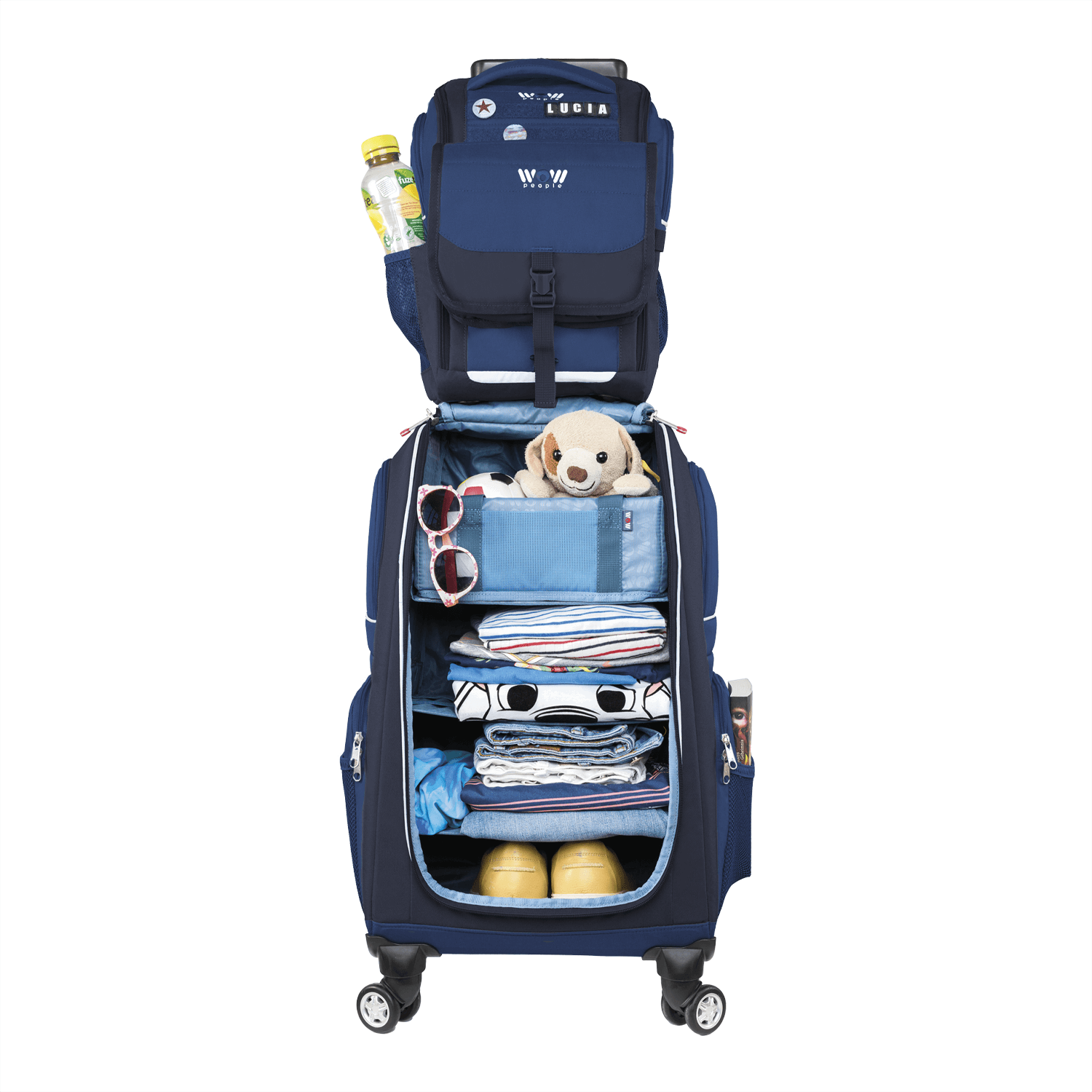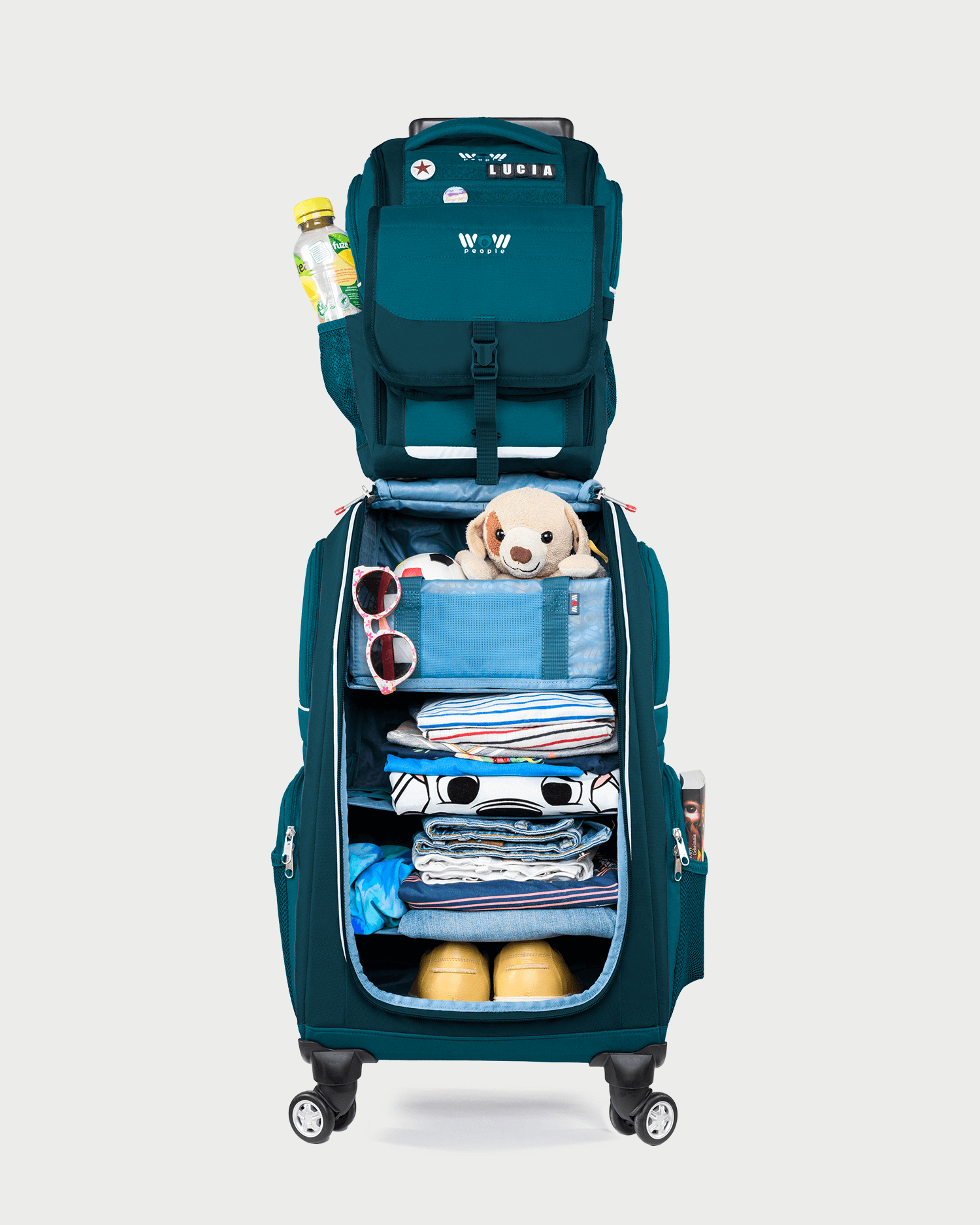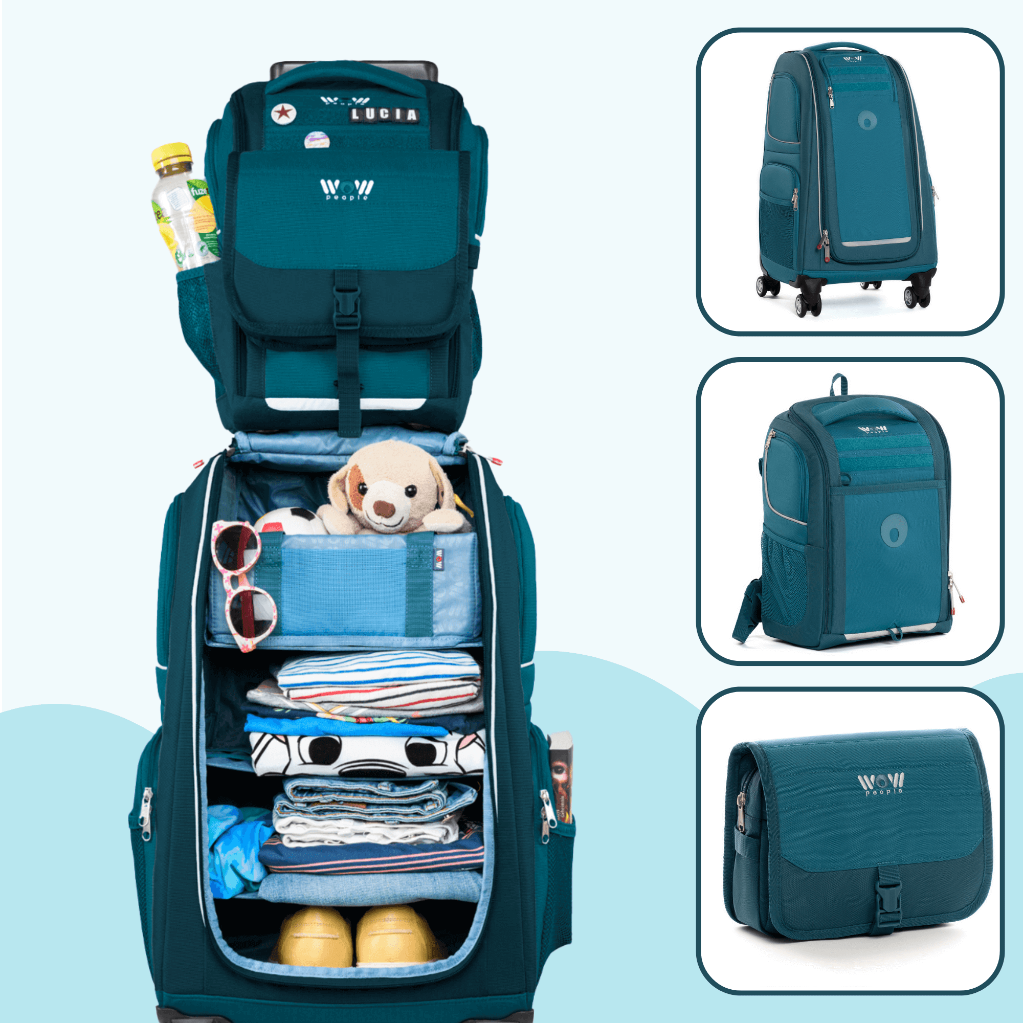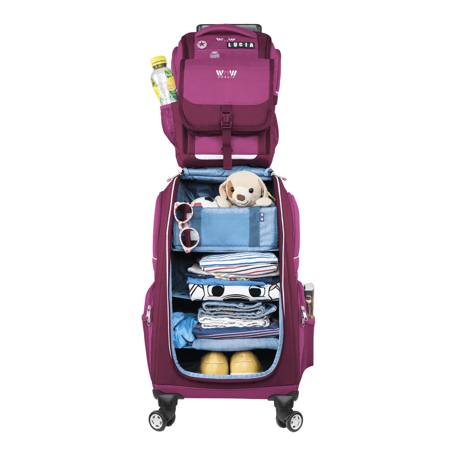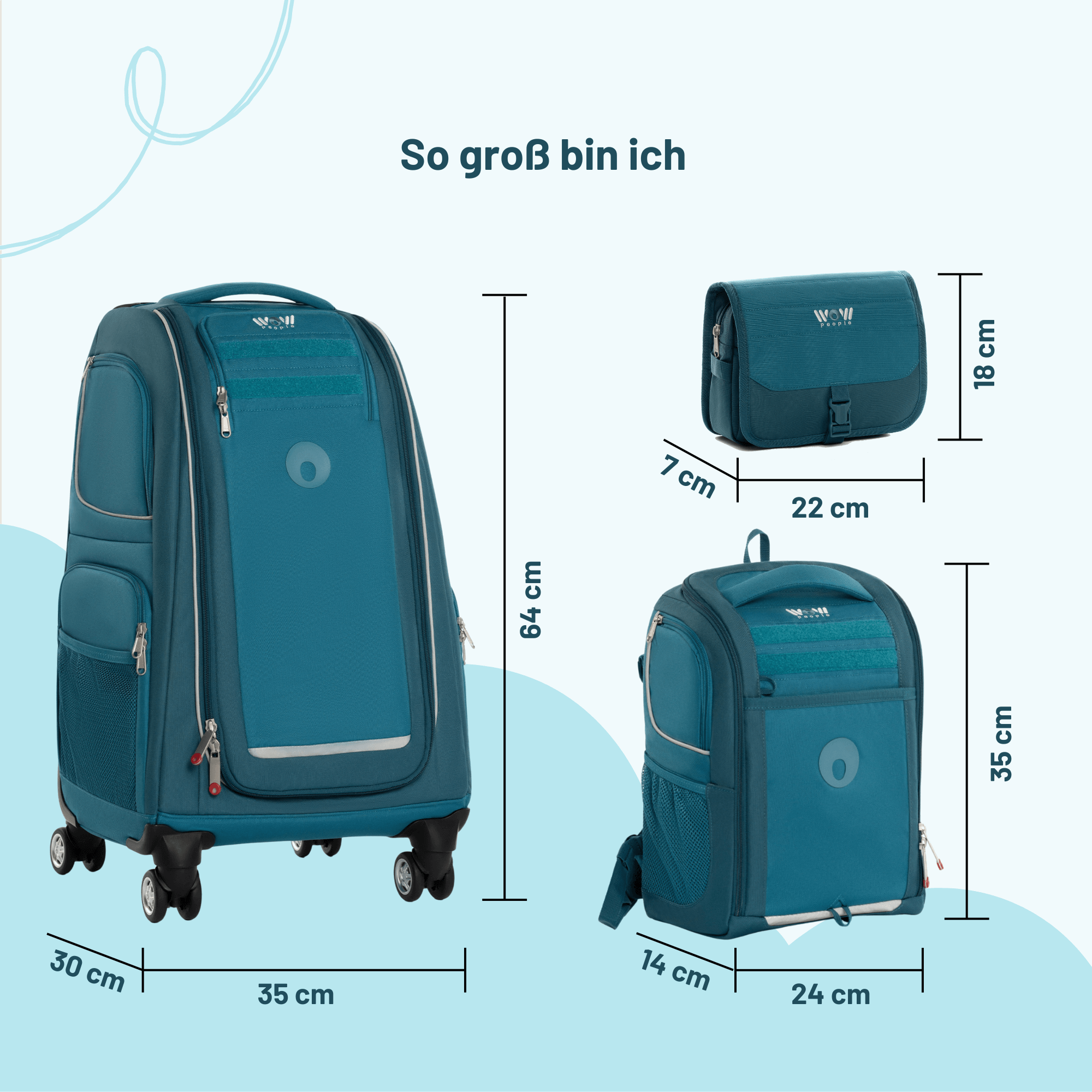 Unser absoluter Bestseller – und das aus gutem Grund! Das dreiteilige WOW Kinder-Schranktrolley-Set enthält alles, was kleine Entdecker brauchen, in einem praktischen Set! Das Set besteht aus einem farbenfrohen, hochwertigen und leicht zu bewegenden Schranktrolley, einem passenden Rucksack, der auch einzeln für Tagesausflüge oder eine Übernachtung getragen werden kann, dann idealerweise mit der im Set enthaltenen Kulturtasche, die von außen am Rucksack befestigt werden kann. Ob zu Hause oder unterwegs, mit diesem Set sind Kinder bestens ausgestattet - und Eltern sparen fast 20 Euro gegenüber dem Einzelkauf. Perfekt für kleine Organisationstalente, die bei ihren Abenteuern alles griffbereit haben wollen!