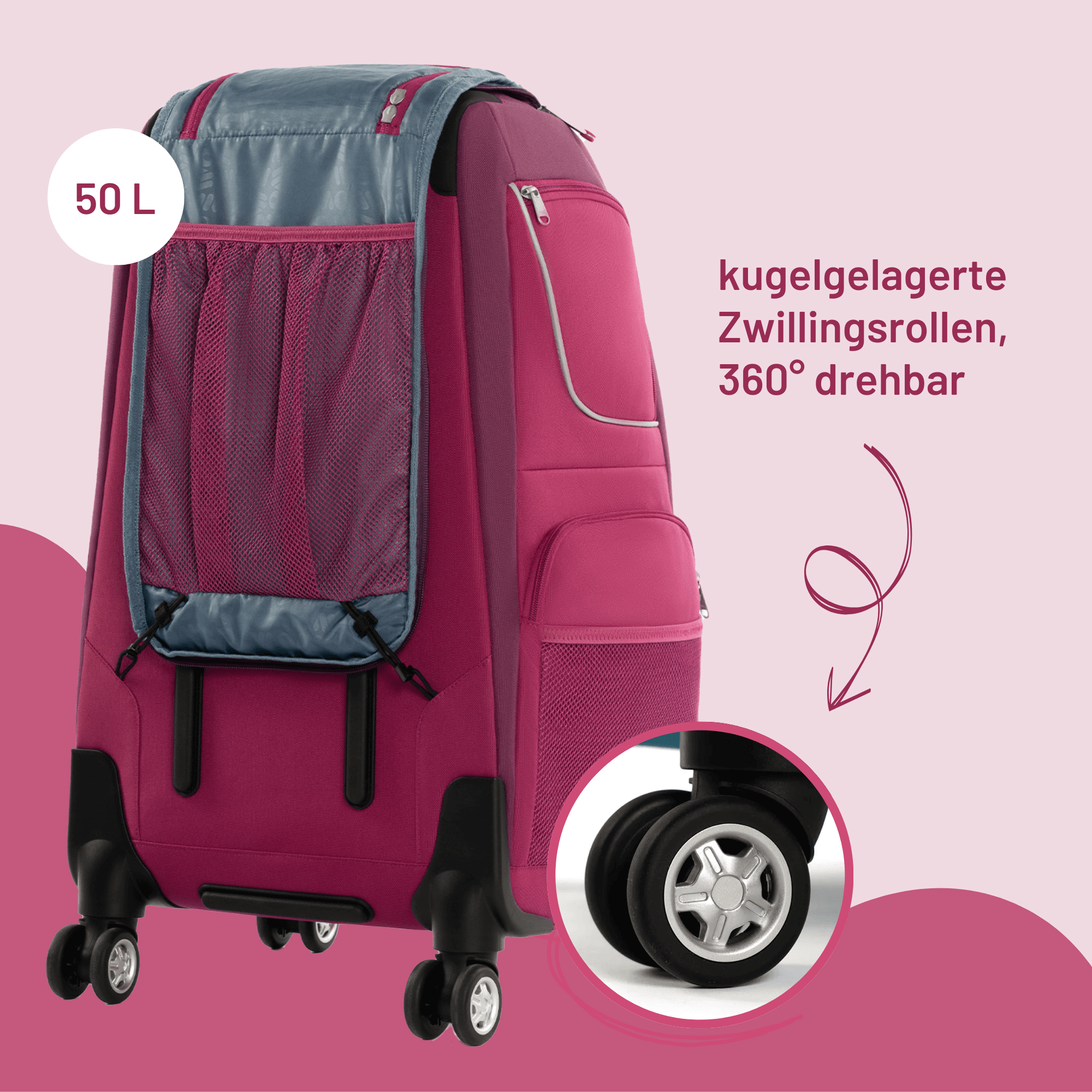 Maßgeblich sind die Gepäckbestimmungen der jeweiligen Fluggesellschaft. Grundsätzlich ist der Kids-Schranktrolley zumindest auf innereuropäischen Flügen kein Handgepäck. Mit einem Fassungsvermögen von 50 Litern ist er ein vollwertiger Reisetrolley.
